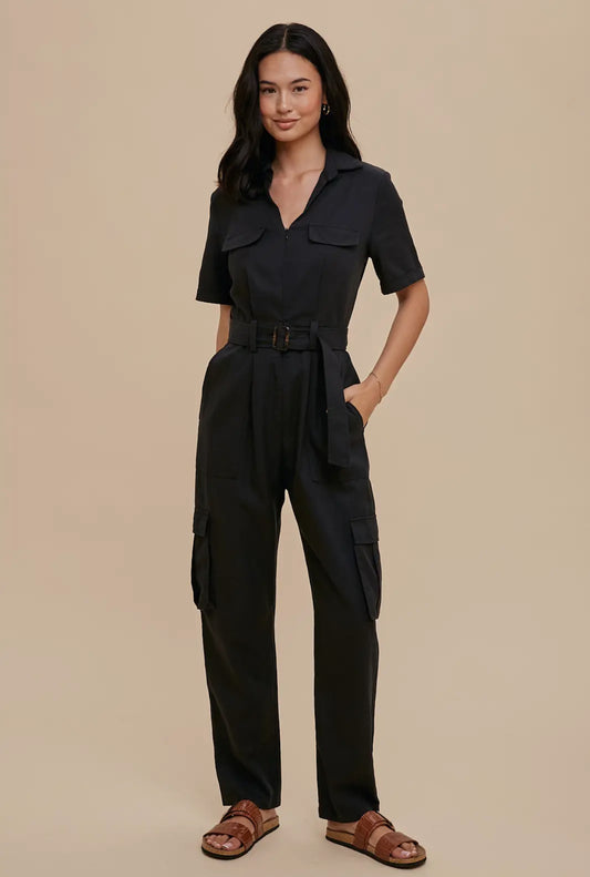 Black Strapless Jumper Suit W Front Concho Studded Detail