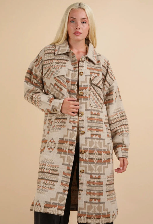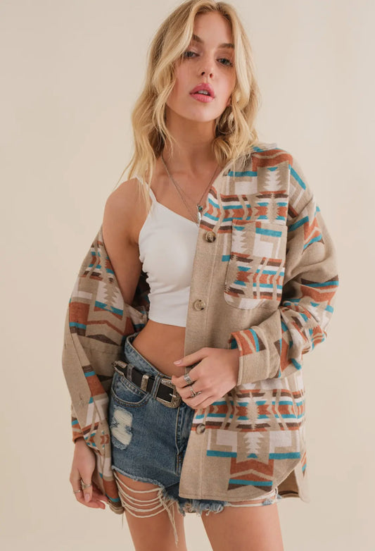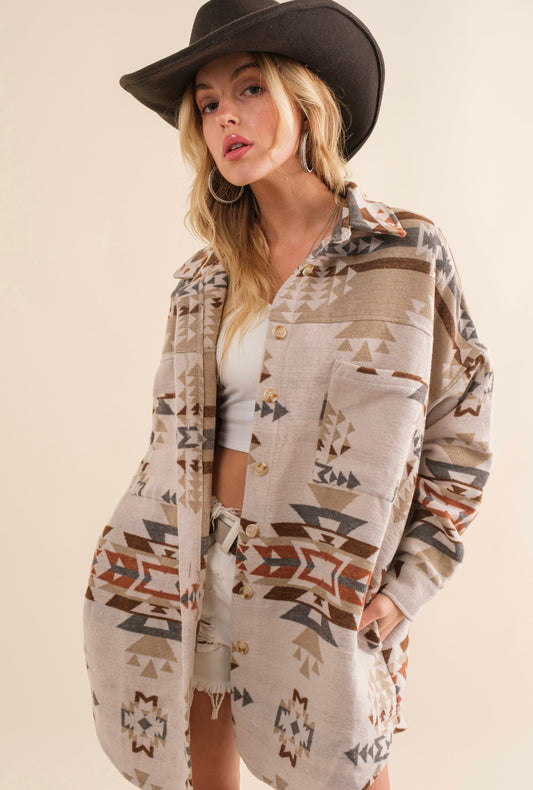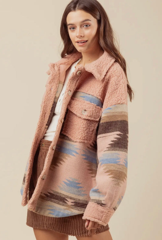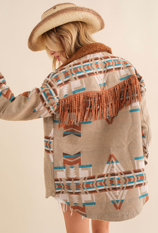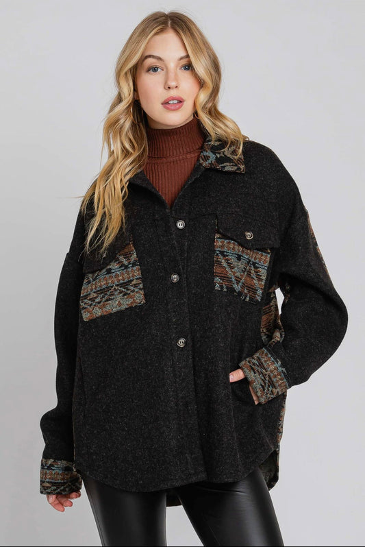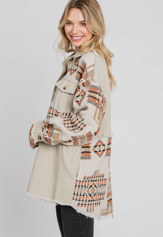 Denim Tone Aztec Back Shacket