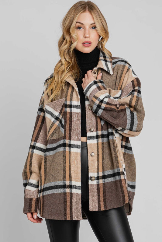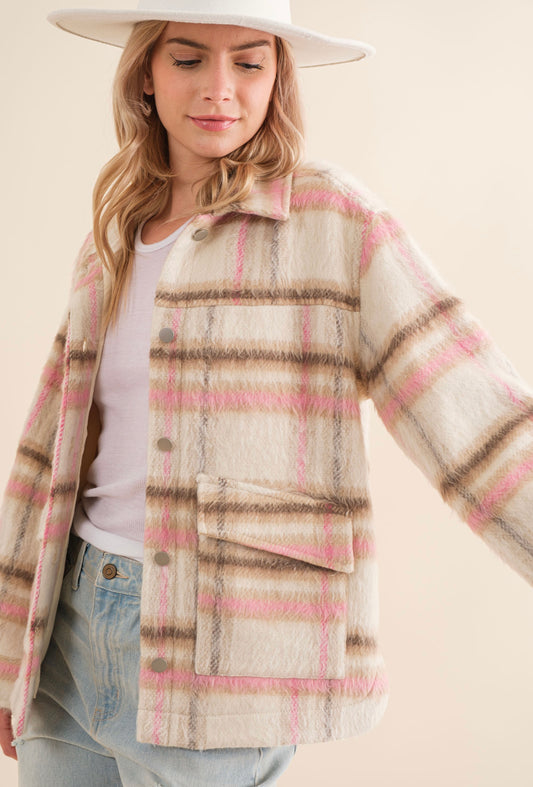 Mauve Brushed Plaid Shacket