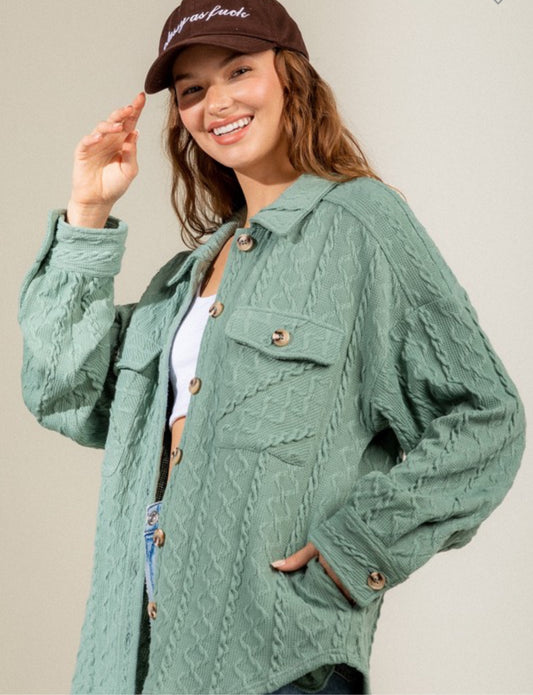 Latte Cable Knit Collard Shacket