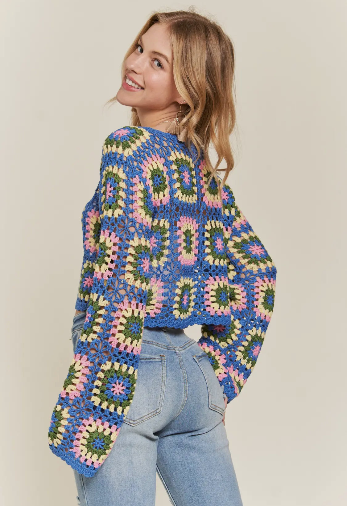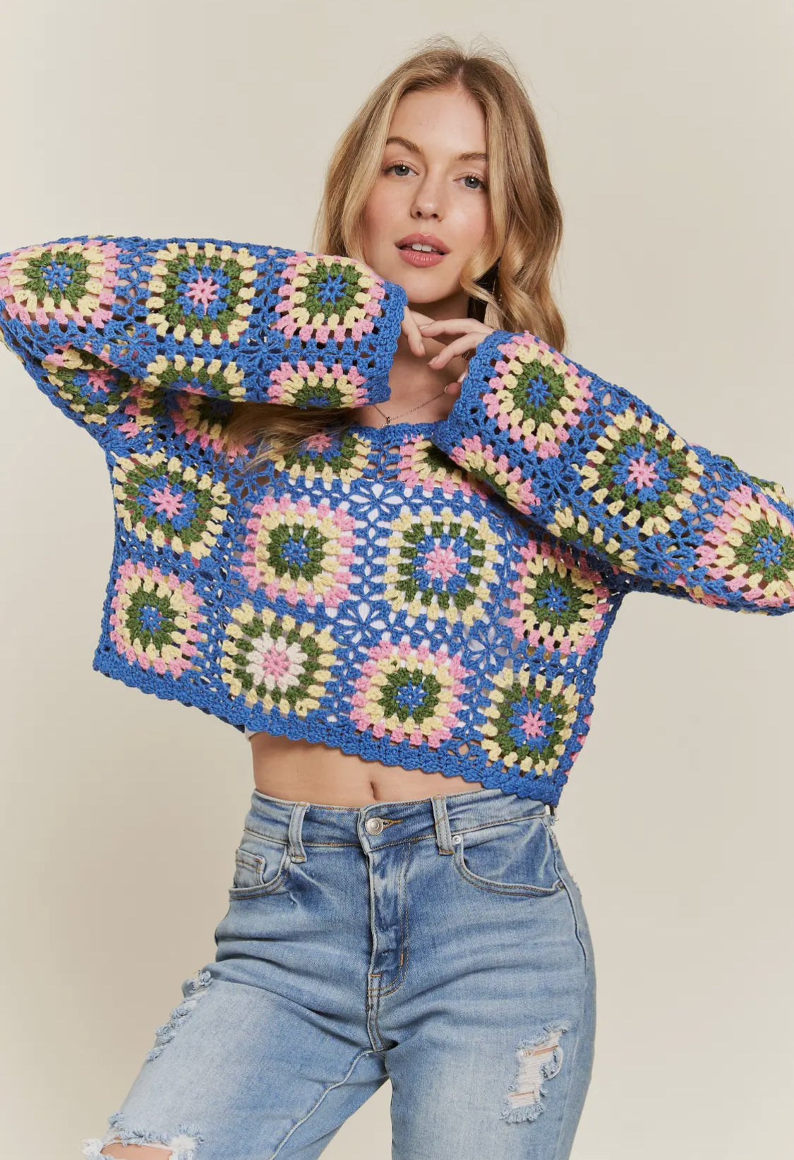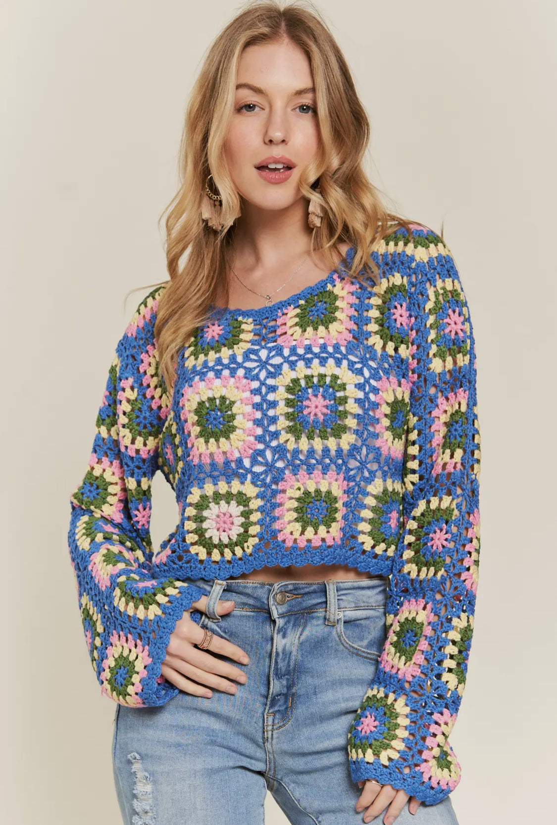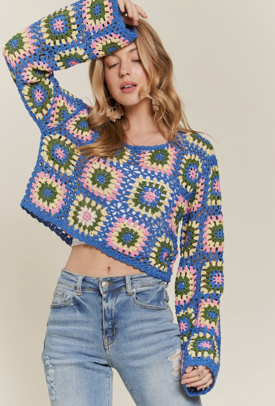 Multicolor Crochet Granny Square Top.