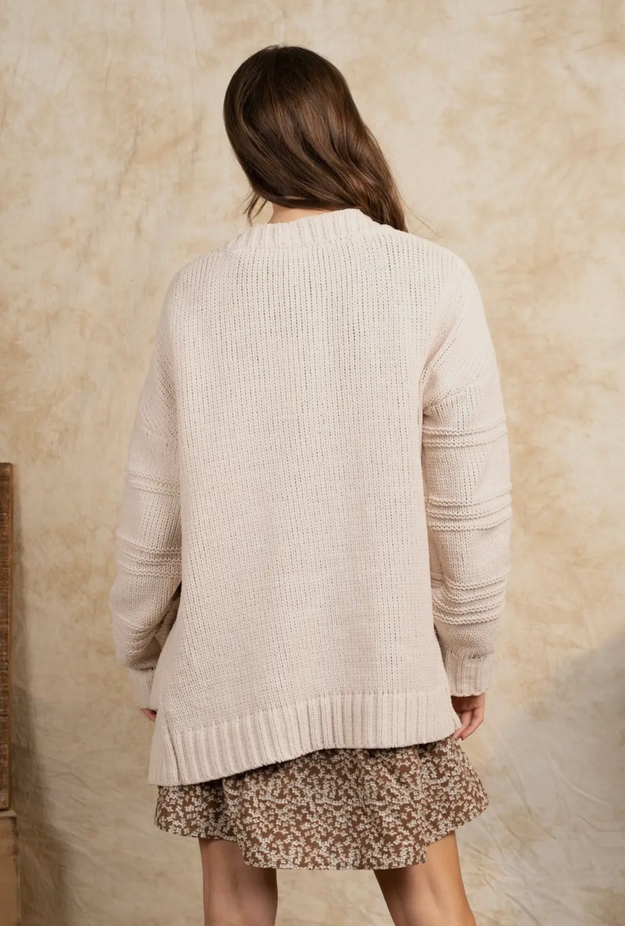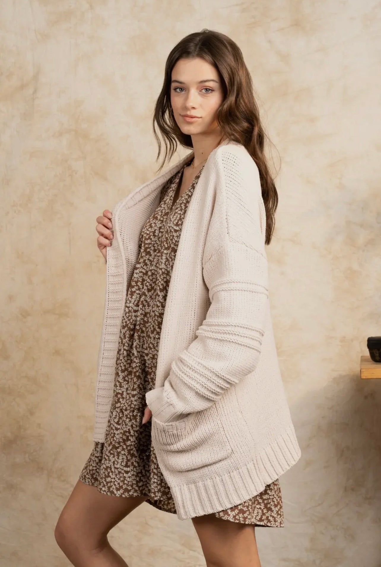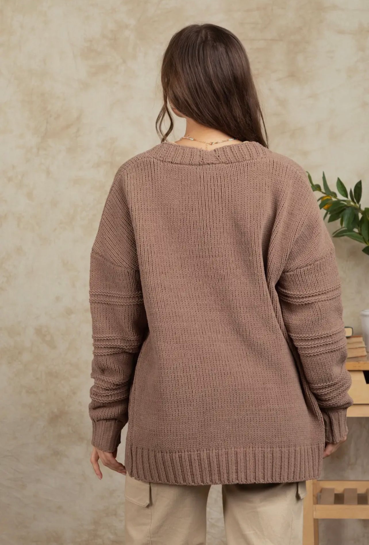 Classic Chunky Sweater Cardigan in Cream and Mocha.
