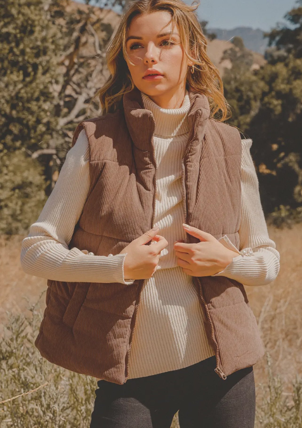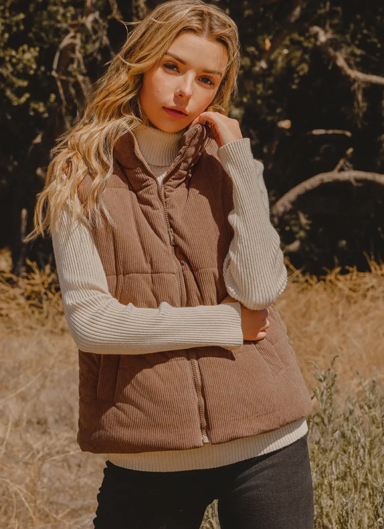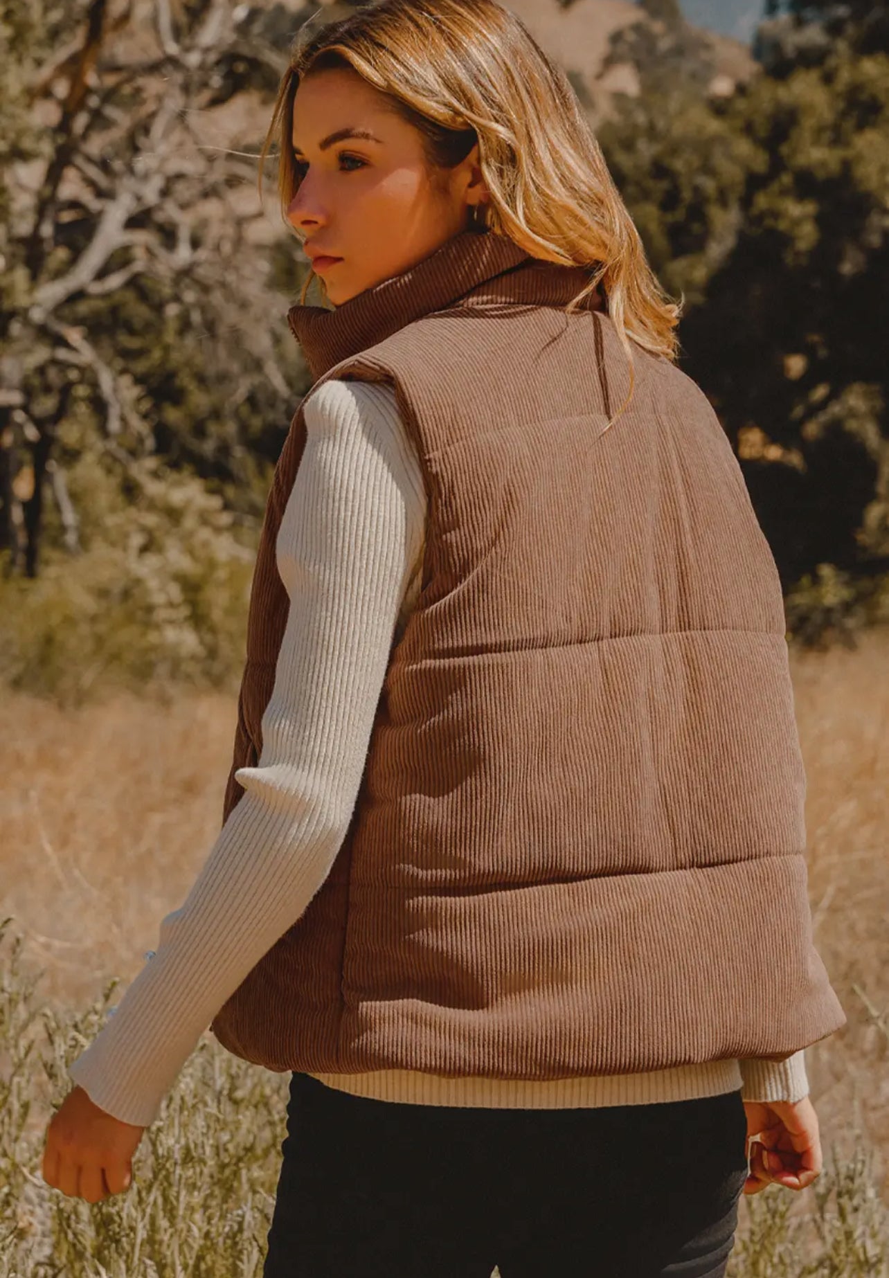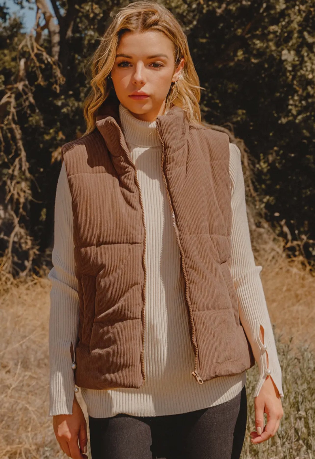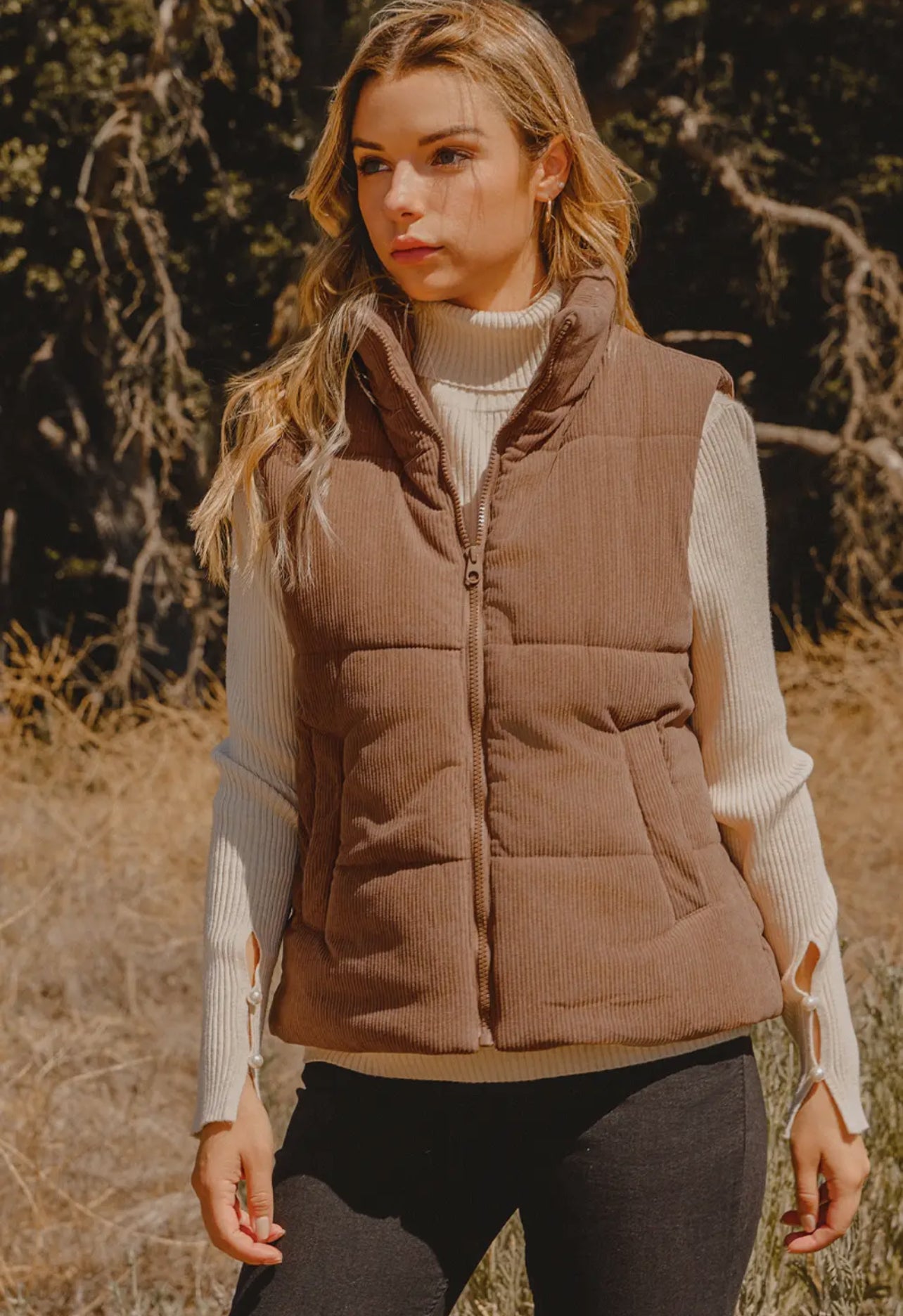 Corduroy Zipper Puffer Vest.