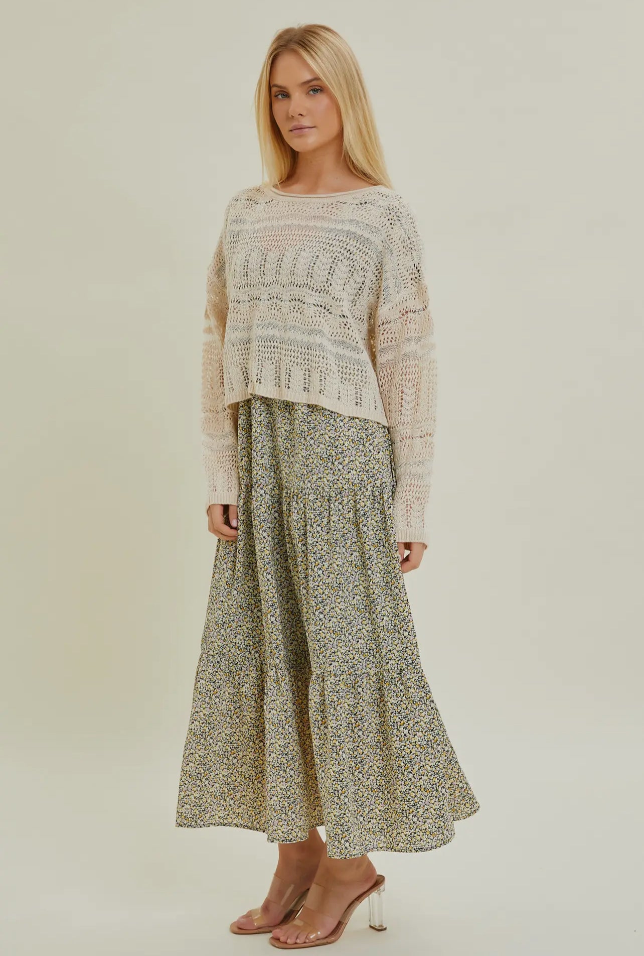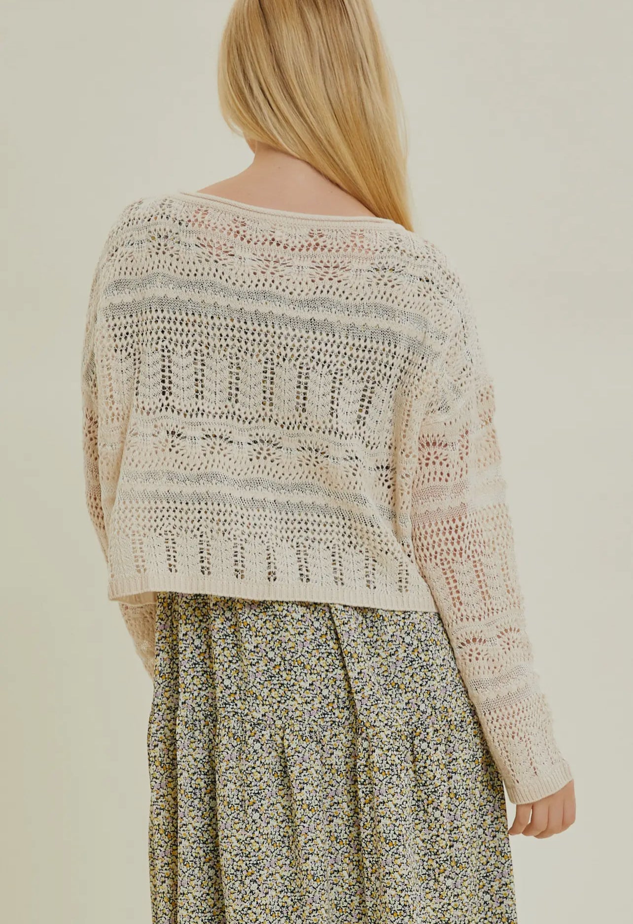 Long Sleeve, Crochet Pullover sweater. Cropped Body.
