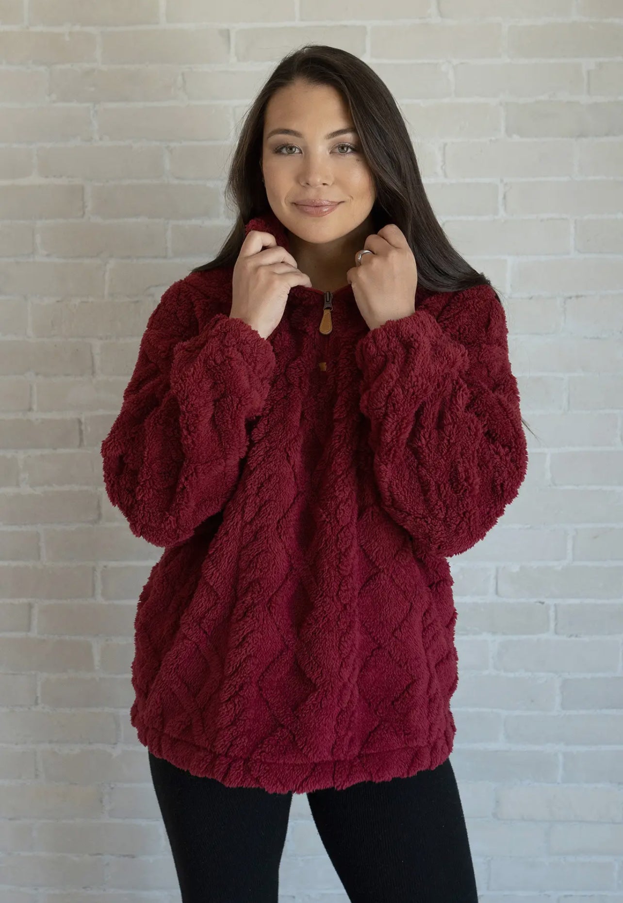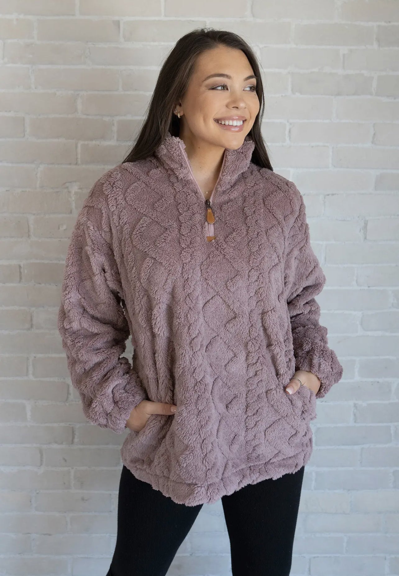 Faux Cable Knit design with Sherpa made from 100% Poly